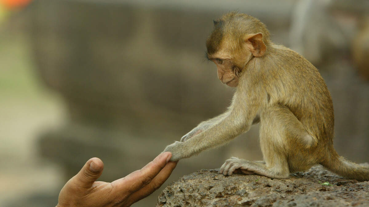 After taking a photo with a very friendly monkey sitting in the Mandore Gardens of Jodhpur, India, a tourist slaps the monkey in the face. The tourist then runs away as his friends laughed at him.