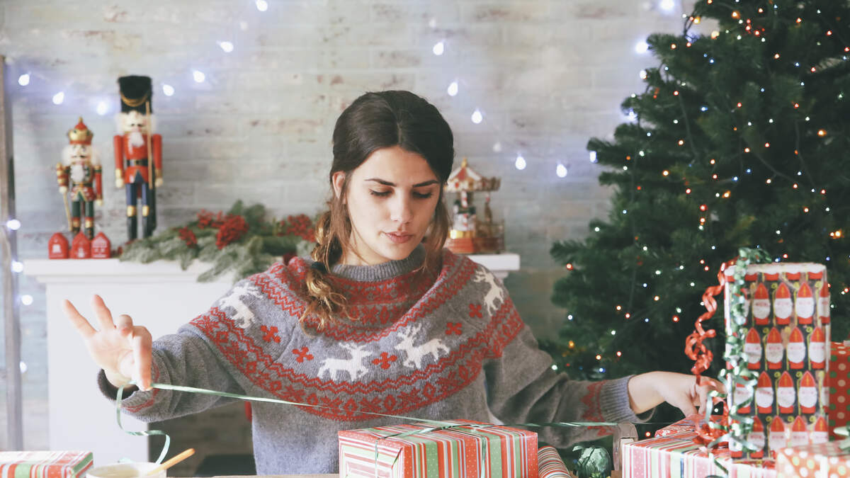 Woman wrapping christmas gifts